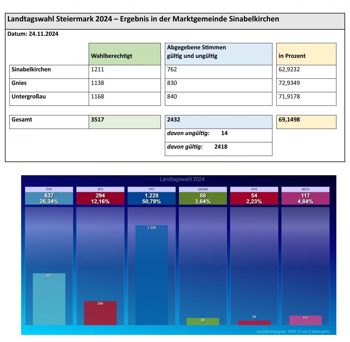 Landtagswahl Steiermark 2024, 24.11.2024