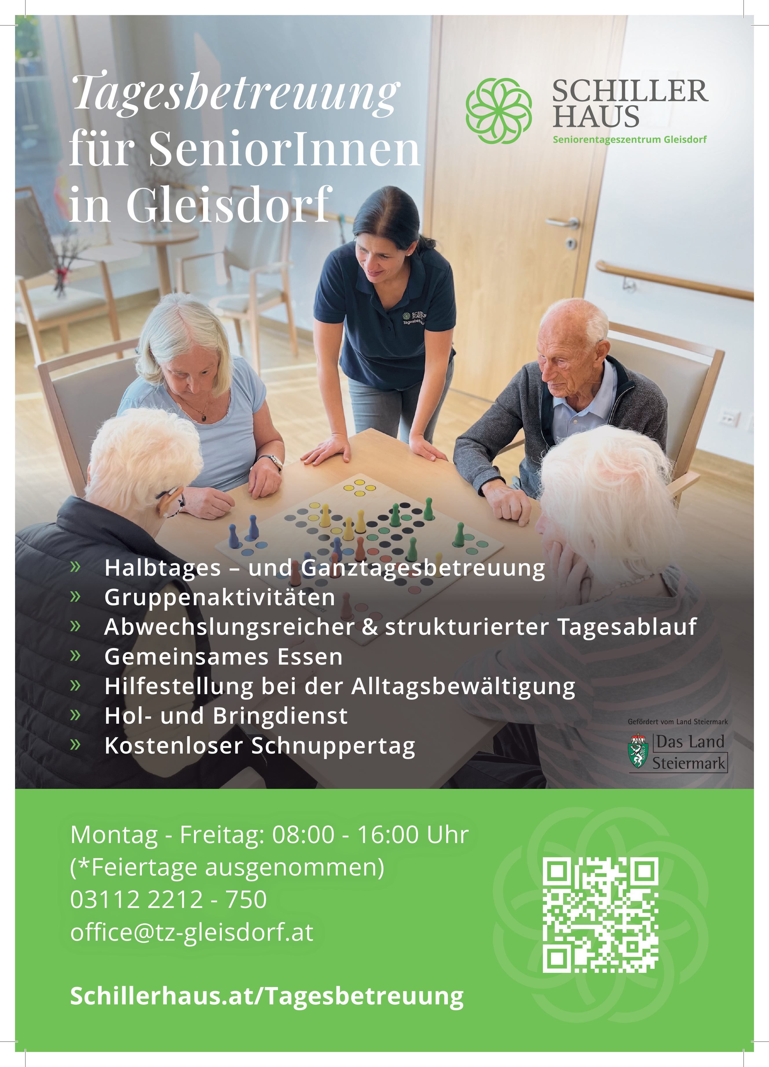Schillerhaus Gleisdorf: Tagesbetreuung für Seniorinnen und Senioren in Gleisdorf: